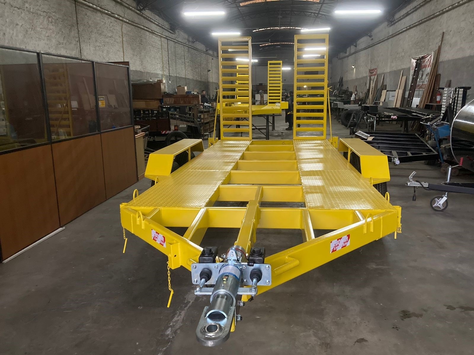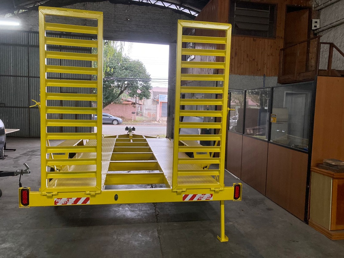 A estrutura em aço carbono com viga “U” de 100mm na parede de 3mm é totalmente soldada com solda MIG, garantindo durabilidade e resistência. Para lamas e estribos em chapa reforçada. Pode ser produzido em dois modelos. Ideal para transporte de veículos de passeio e utilitários. Dois eixos, feixe de molas resistente e freio inercial, acompanha duas rampas de acesso emmbutidas produzidas em aço.
