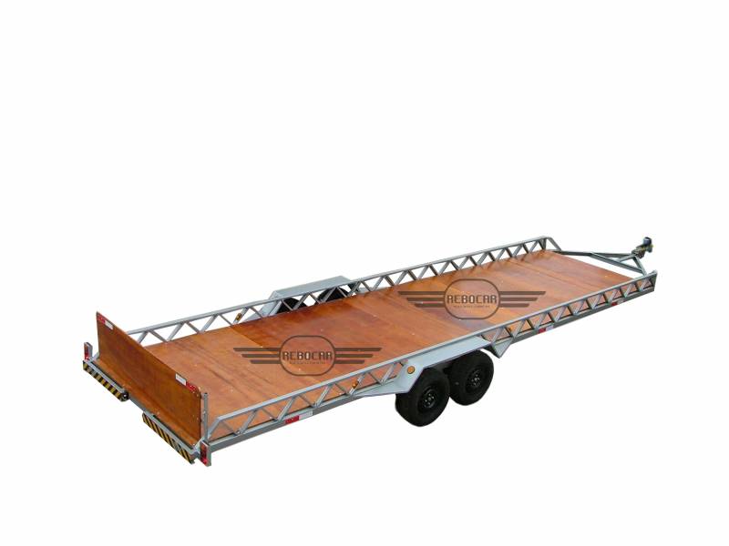 Este projeto foi desenvolvido visando atender uma necessidade especial. A finalidade é transportar piscinas de fibra de vidro. A piscina, que pode ter até 20 metros de comprimento, é amarrada apoiada sobre sua lateral.Dessa forma o cliente pode agilizar suas entregas e diminuir custos com o frete ou com a aquisição de um caminhão para a mesma finalidade.